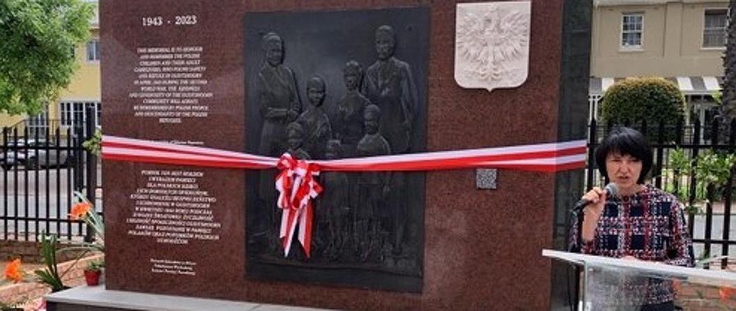 24 września br., przemawiając na uroczystości odsłonięcia pomnika upamiętniającego polskie dzieci i ich dorosłych opiekunów, którzy znaleźli bezpieczne schronienie w Oudtshoorn w 1943 r., Pani Minister podziękowała wszystkim zaangażowanym w realizację tego projektu, m.in. Prezesowi Związku Sybiraków w Afryce Południowej, Stefanowi Szewczukowi, oraz przedstawicielom Muzeum CP Nel w Oudtshoorn.
