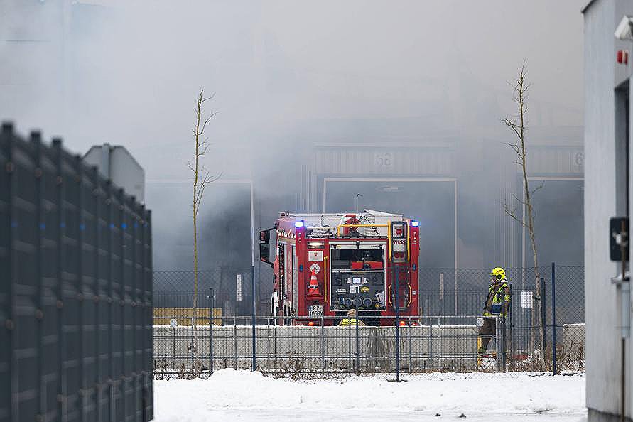 Strażacy dogaszają pożar dużej hali magazynowej w podpoznańskim Tarnowie Podgórnym (Wielkopolskie). Ogień został zauważony w niedzielę rano, hala należy do firmy spedycyjnej.