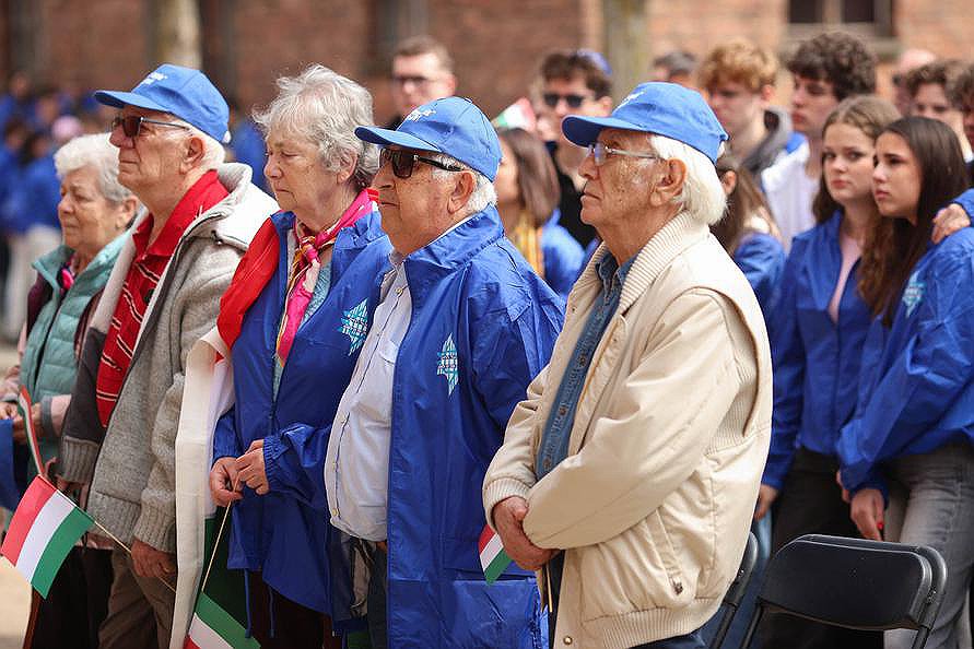 Pod historyczną bramą obozową uczestnikom towarzyszyło około 40-50 ocalałych z Holokaustu. Oni otworzyli marsz.